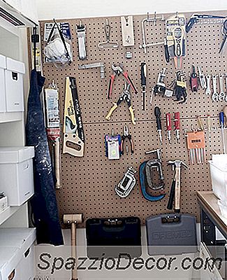 Thời gian công cụ được tổ chức nhờ một bảng điều khiển và móc thép đơn giản. Hãy thử điều này trong nhà riêng hoặc nhà để xe của bạn để treo đồ lặt vặt linh tinh.