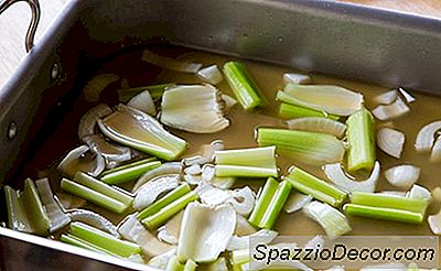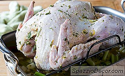 Bước 1: Một giờ trước khi nấu gà tây, lấy con chim ra khỏi tủ lạnh và loại bỏ bất kỳ bao bì và / hoặc túi gifets. Làm nóng lò nướng ở mức 450 độ Fahrenheit và đặt giá đỡ lò sao cho vị trí thứ ba từ dưới lên. Quăng những miếng cần tây, hành tây xắt nhỏ và nước dùng vào khay nướng của bạn.